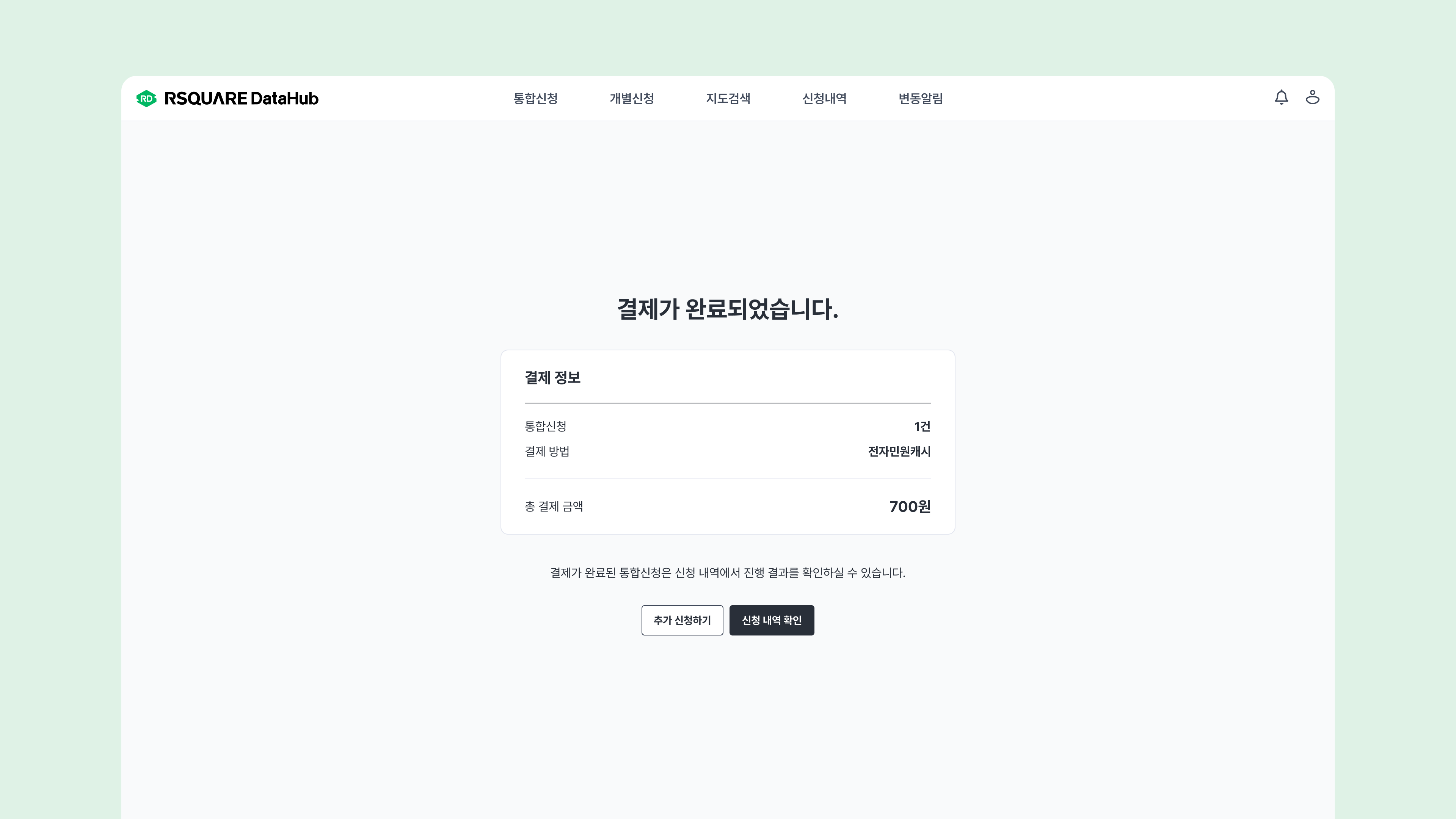 신청할 공적장부 목록을 확인하고 결제 수단을 선택하여 열람/발급 비용을 결제합니다.