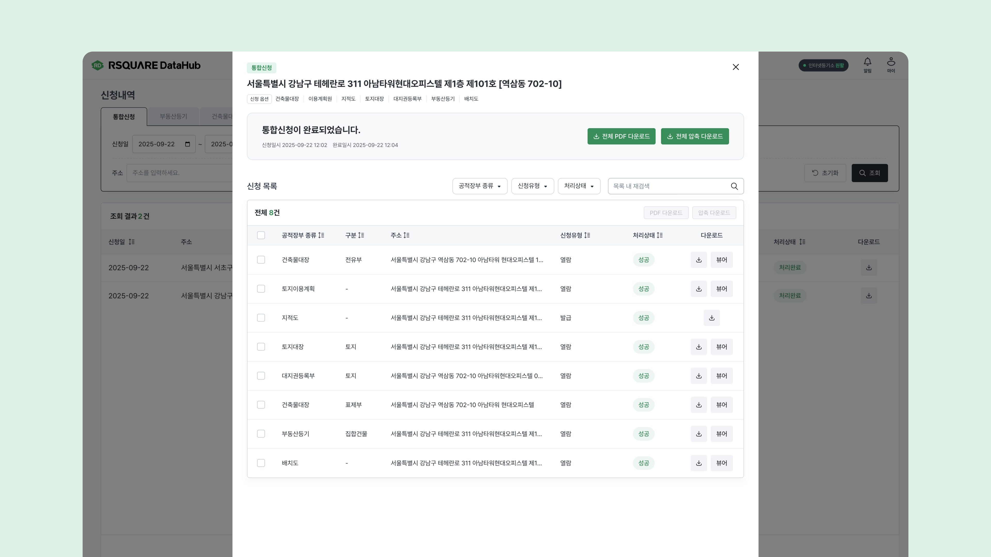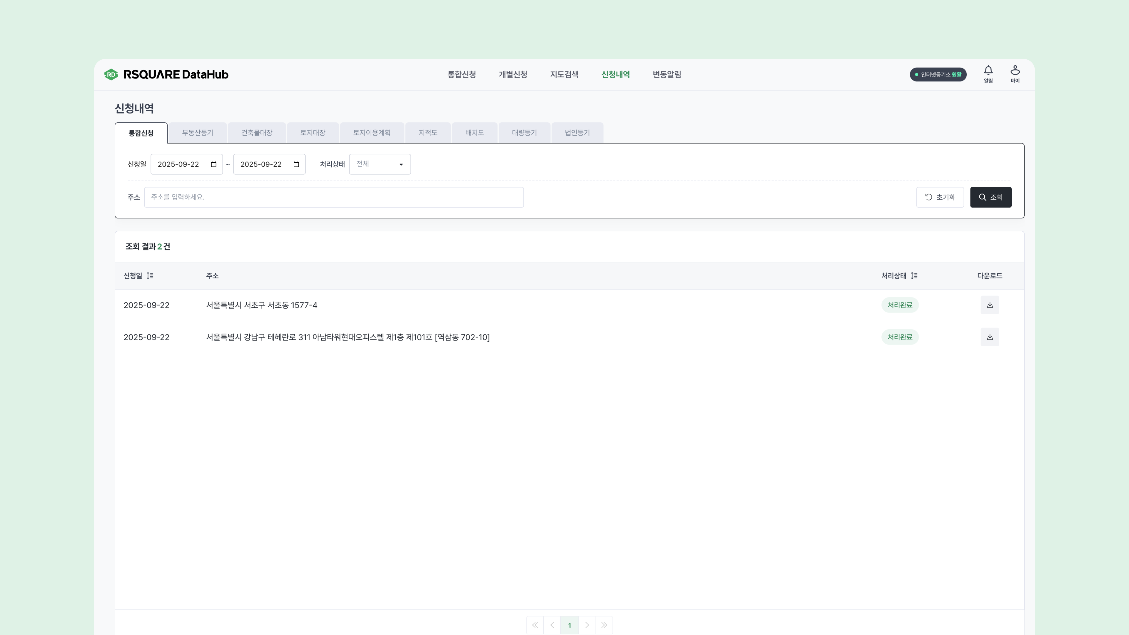 열람/발급 처리가 완료되면 신청한 공적장부를 원하는 방식으로 다운로드할 수 있습니다.