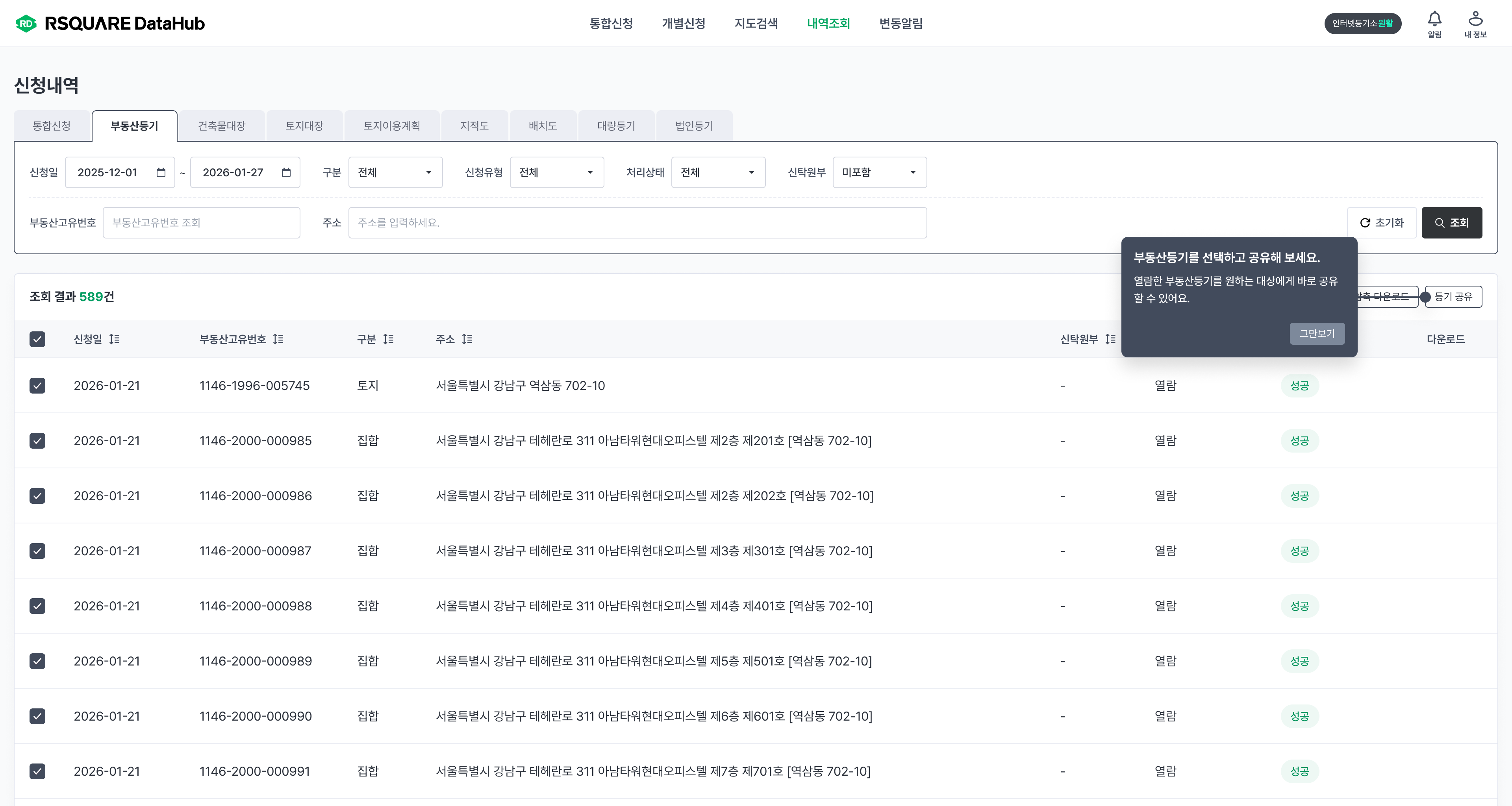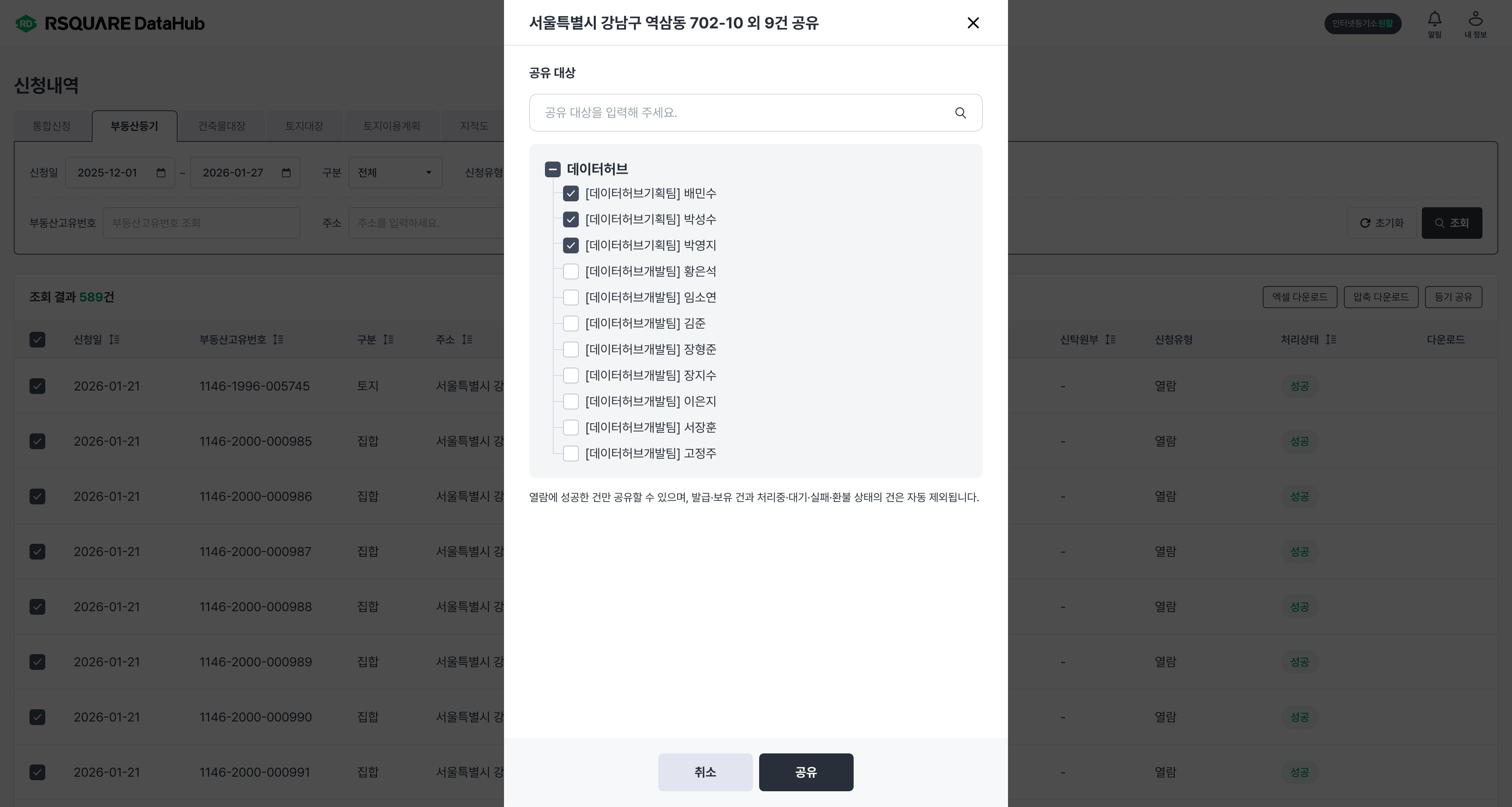 부동산등기 공유 기능은 계약 조건에 따라 일부 고객사에 한해 제공됩니다.