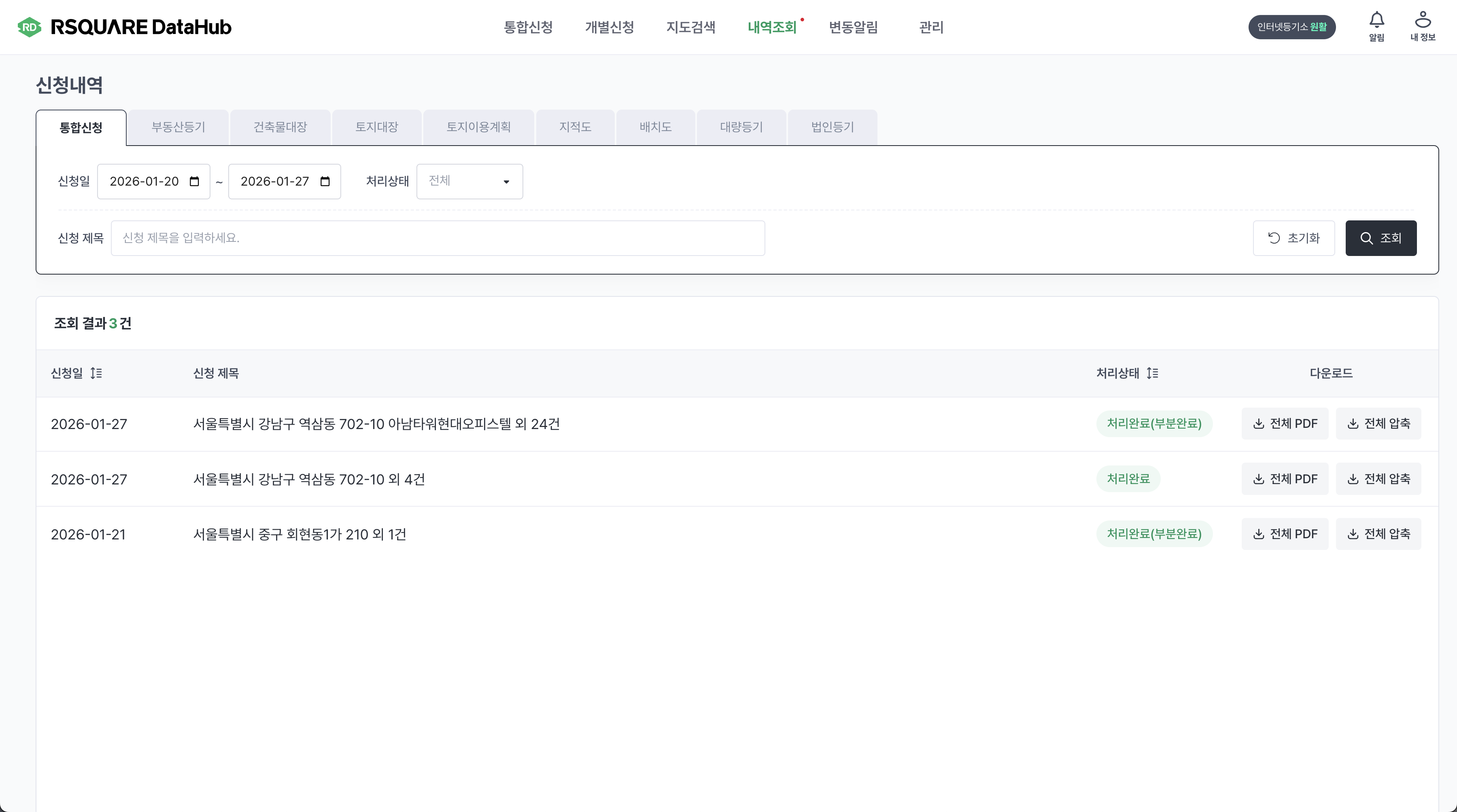 2️⃣ 통합신청 내역 조회하기